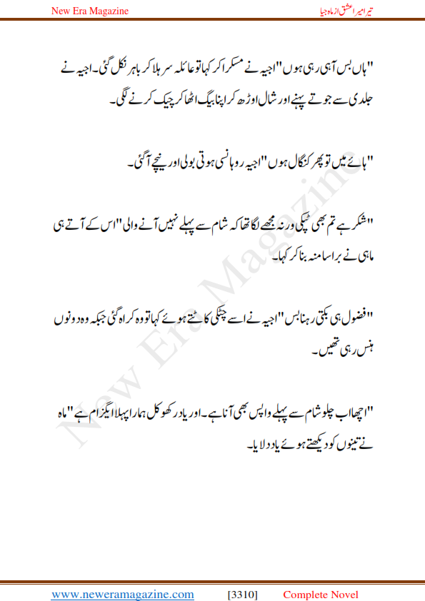 New Era Magazine presents a New Era Special romantic novel Tera Mera Ishq written by Maah Jiya. This is the story of Butt House, Ajiyah Butt, and Shah Mustafa. Hope you like this Story and to Knows More about the story of the Novel you must read it.