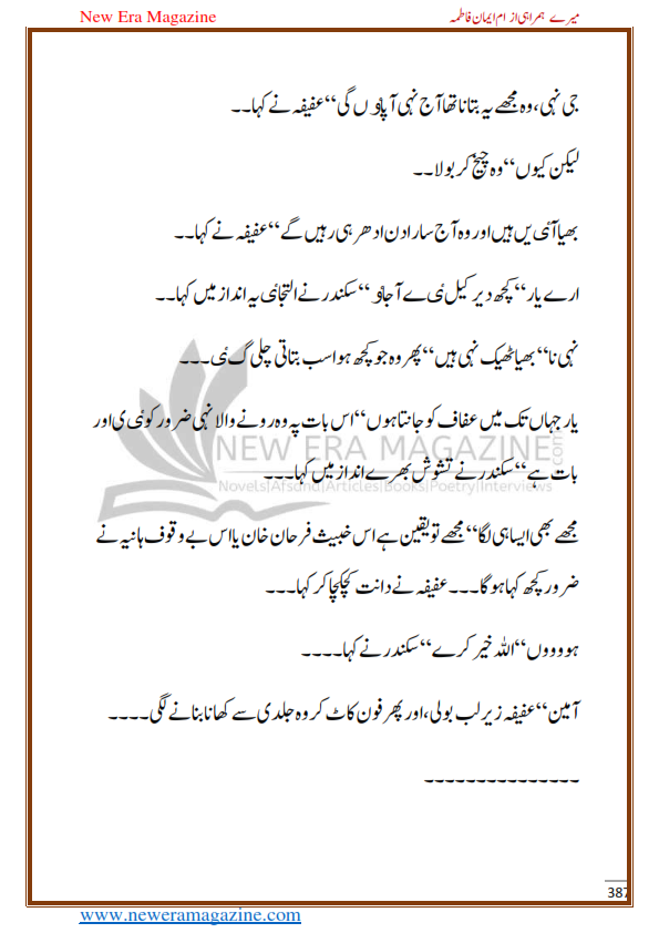New Era Magazine presents a new Urdu social romantic novel Mere Humrahi written by Umme Emaan Fatima. Hope you like this Story and to Know More about the story of the novel you must read it.